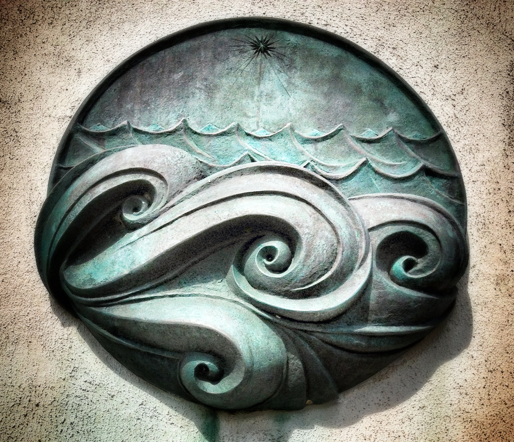 This sculpture is hanging on the wall outside the Yaquina Head Lighthouse on the Oregon Coast. It was not a nice day at the beach, which isn’t unusual. With a little manipulation from Snapseed, I was able to capture light and make this photo brighter and more bold.
